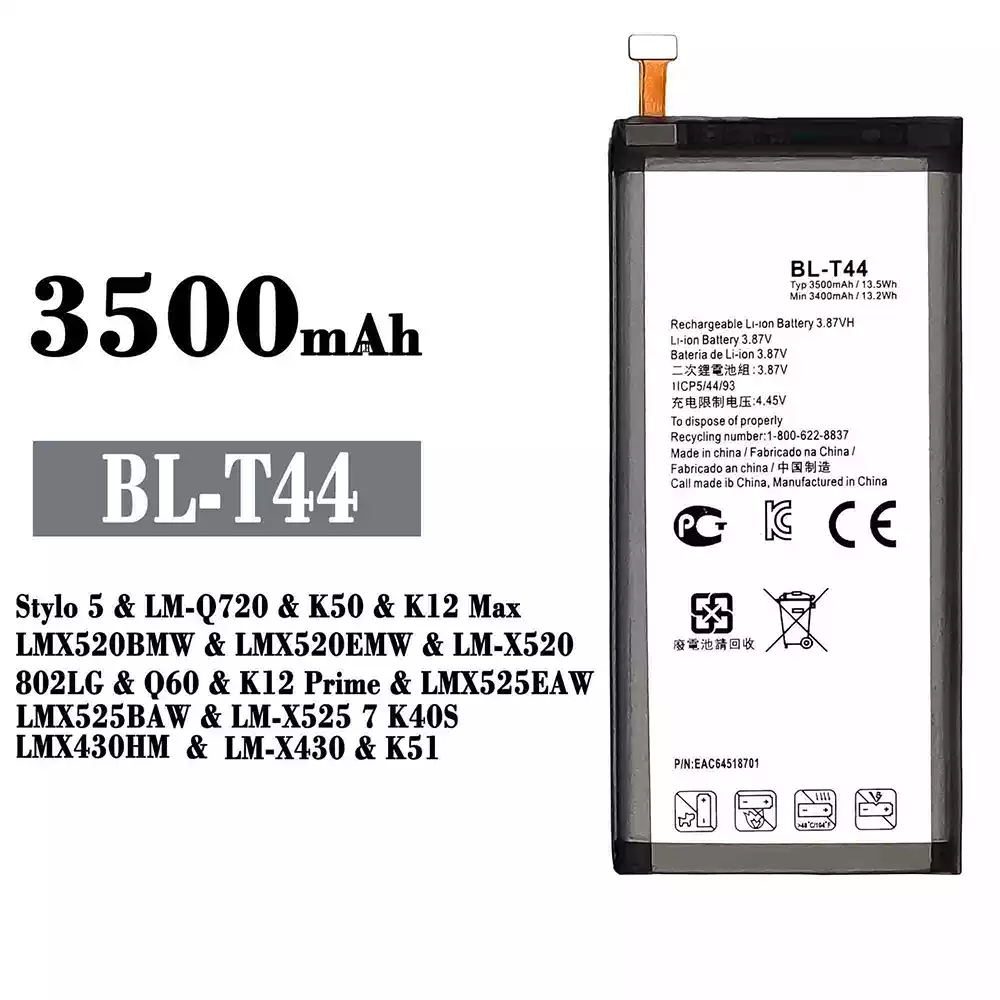 Baterie BL-T44 pentru LG Stylo 5 / LM-Q720 / K50 / K12 Max / LMX520BMW / LMX520EMW / LM-X520 / 802LG / Q60 / K12 Prime / LMX525EAW / LMX525BAW / LM-X525 7 K40S / LMX430HM / LM-X430 / K51