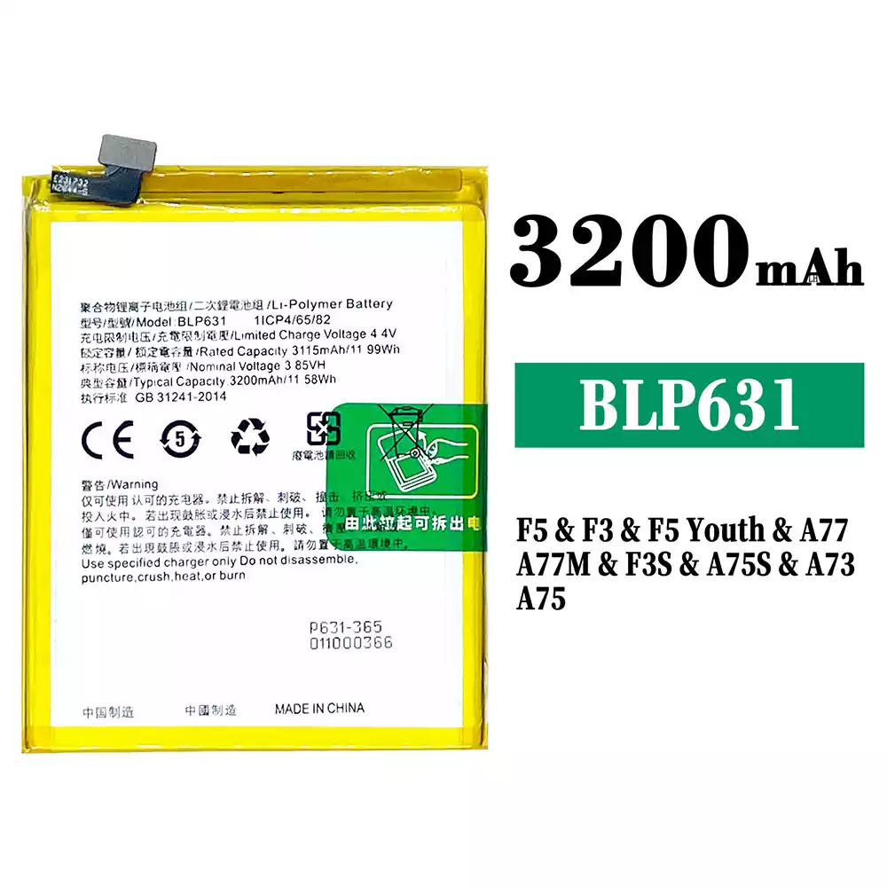 Baterie BLP631 pentru OPPO F5 / F5 Plus / CPH1723 / CPH1727 / CHP1723 / CHP1727 / F5 Youth / A73 /CPH1725 / F3 / CPH1609 / A77 / CPHl715 / A75